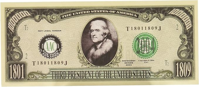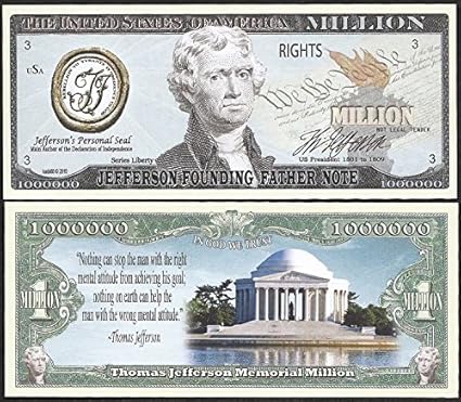 Amazon Com Thomas Jefferson Founding Father Memorial Million Dollar Bill Lot Of 2 Bills Everything Else